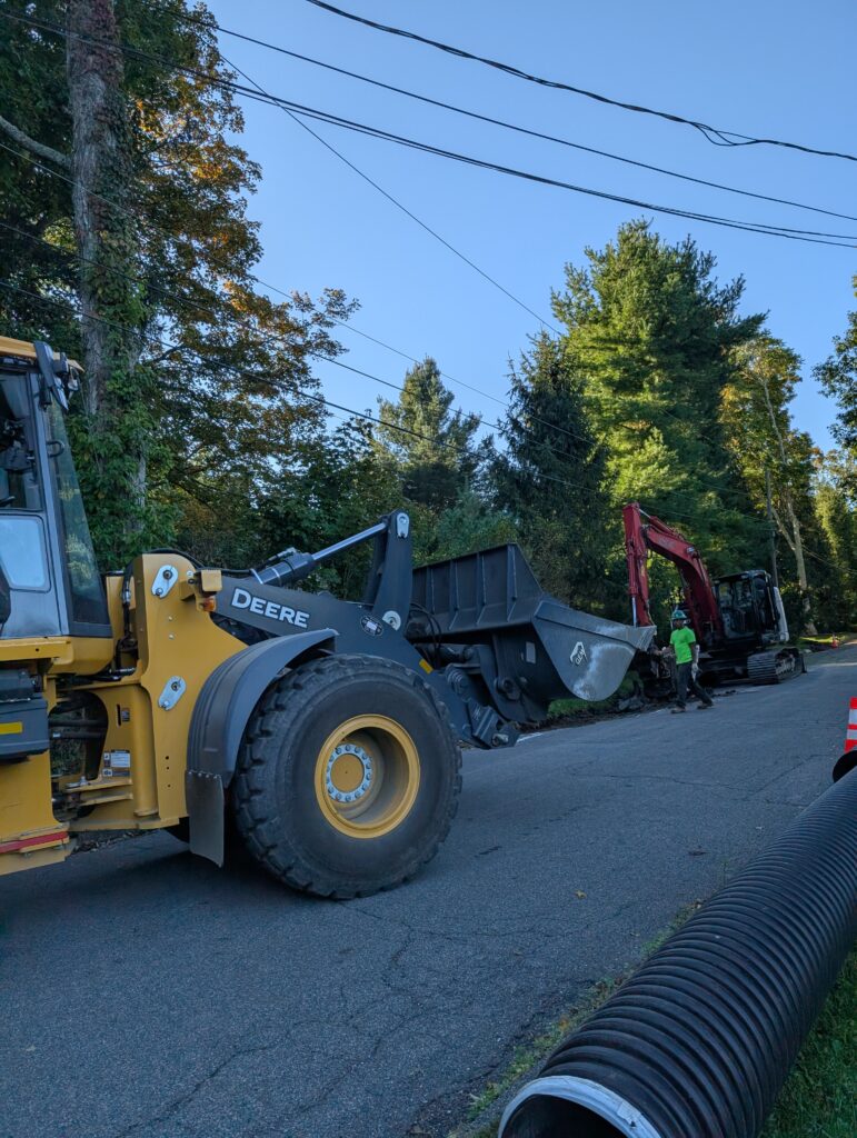 Paving contractor continues work on Coopers Ln and Country Farm Ln. Binder course of asphalt was put down last week and this week they will continue with curbs, aprons and backfill.